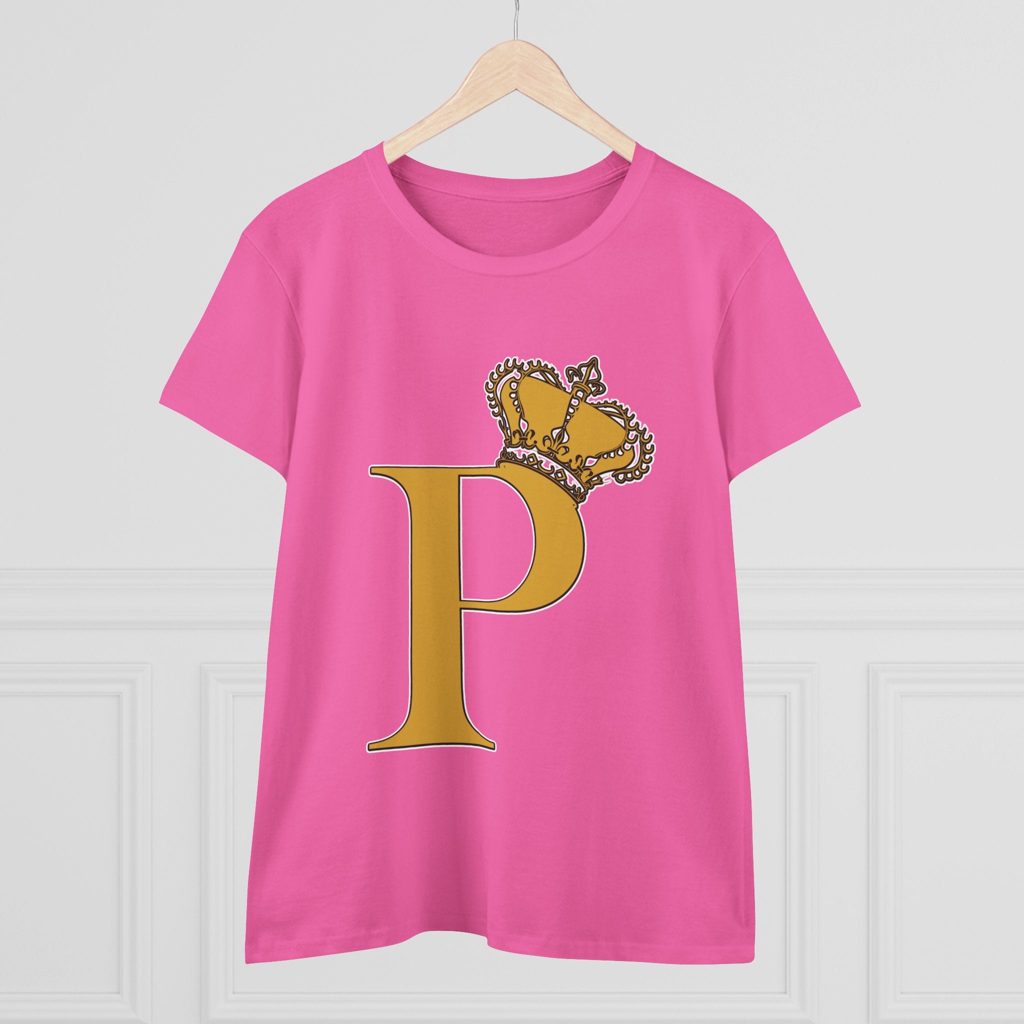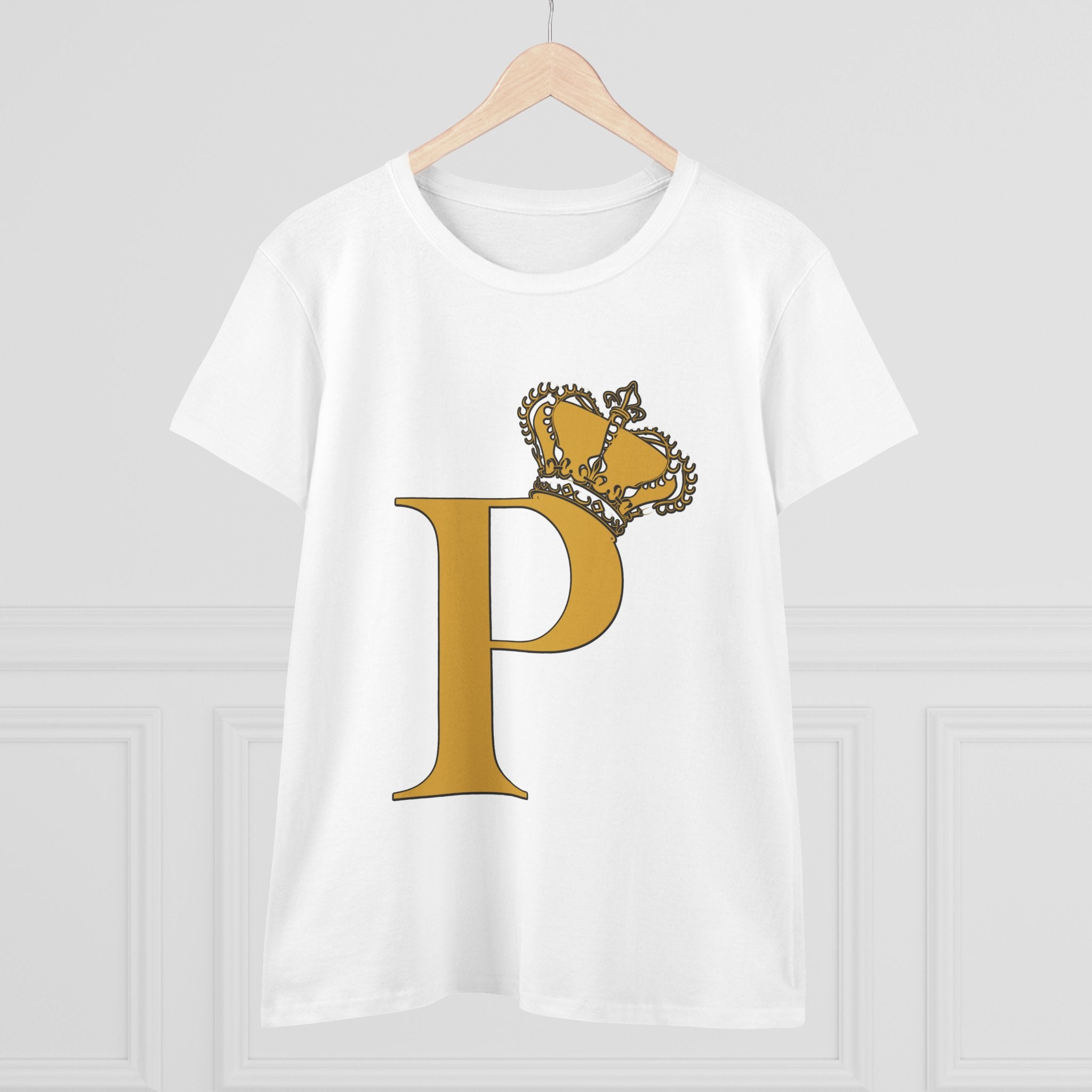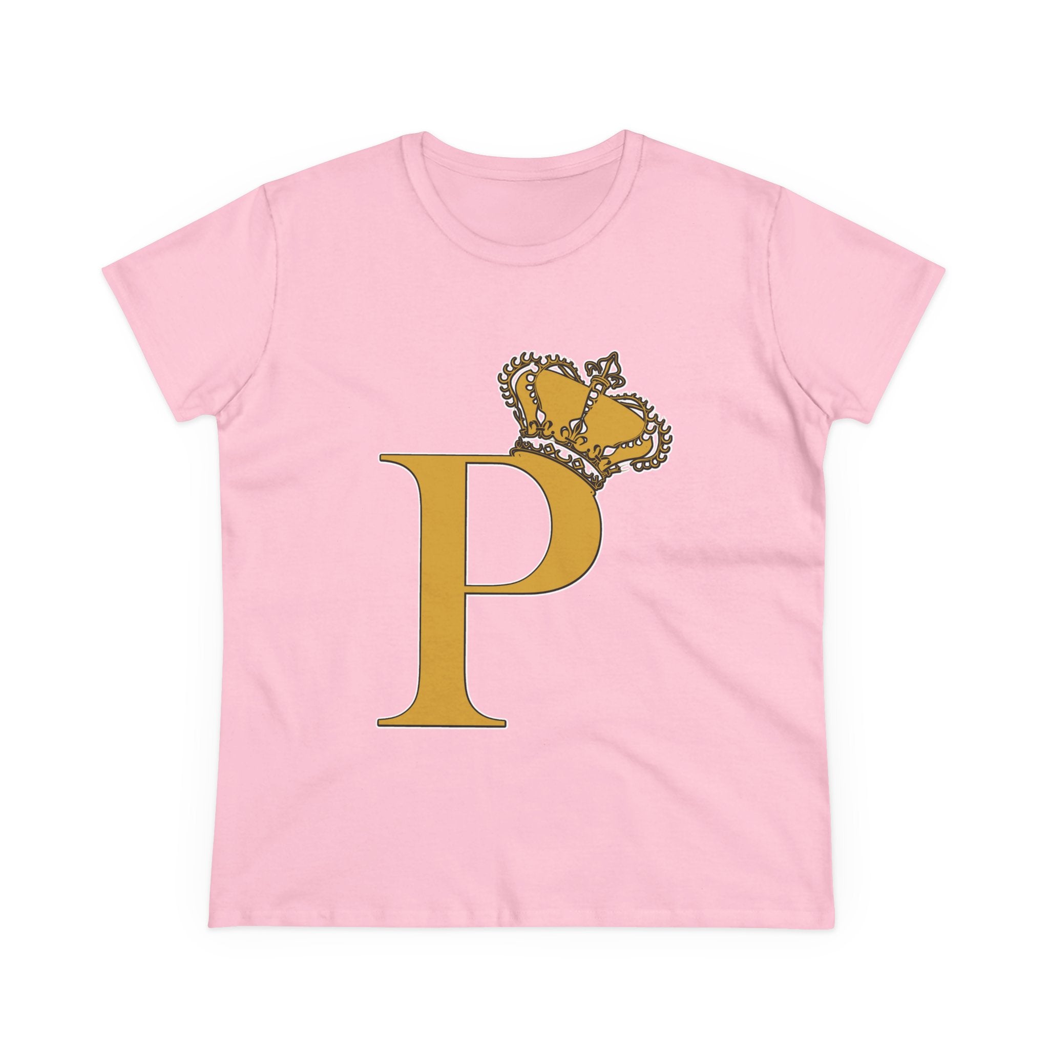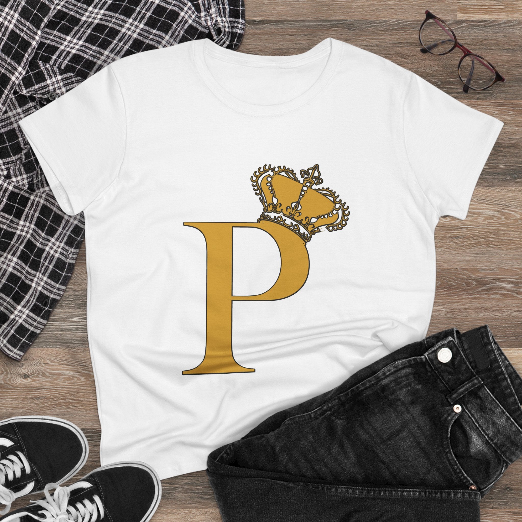 Step into your power with the P is for Power crowned monogram tee. Featuring a bold golden “P” topped with a regal crown, this black shirt is perfect for those who wear confidence like royalty.